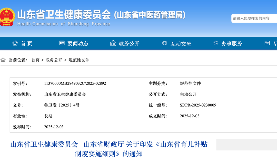 直达个人账户!山东育儿补贴实施细则来了