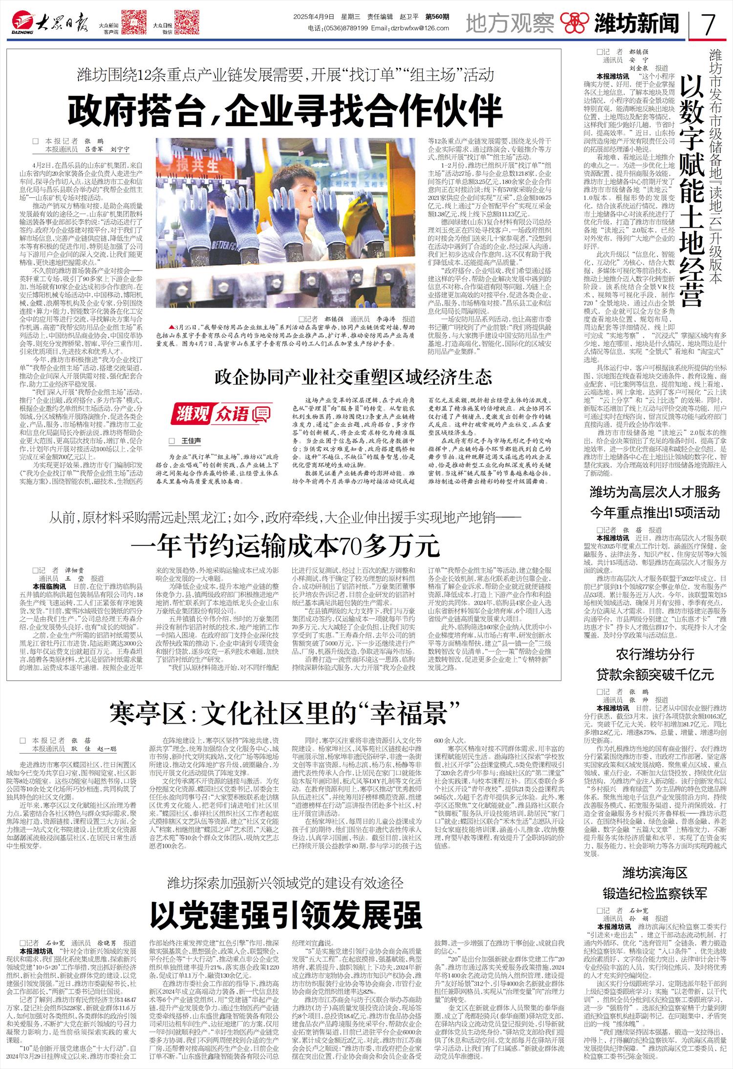 今年,潍坊市积极推进“我为企业找订单”“我帮企业组主场”活动,搭建交流渠道,推动企业间深入开展供需对接、强化配套合作,助力工业经济平稳发展。