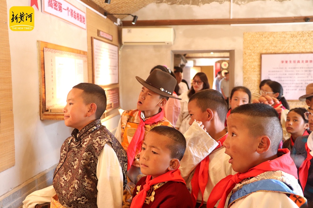 2025年9月25日,在山东省高密市姜庄镇,西藏南木林县的小学生在参观当地红色研学基地。
