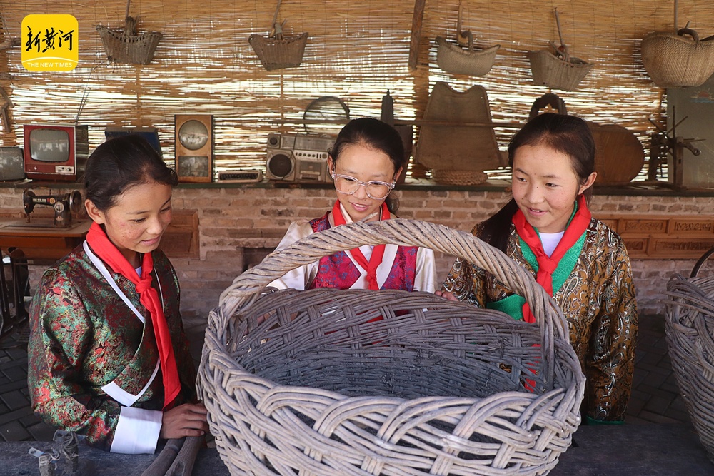 2025年9月25日,在山东省高密市姜庄镇,西藏南木林县的小学生在参观当地非遗。