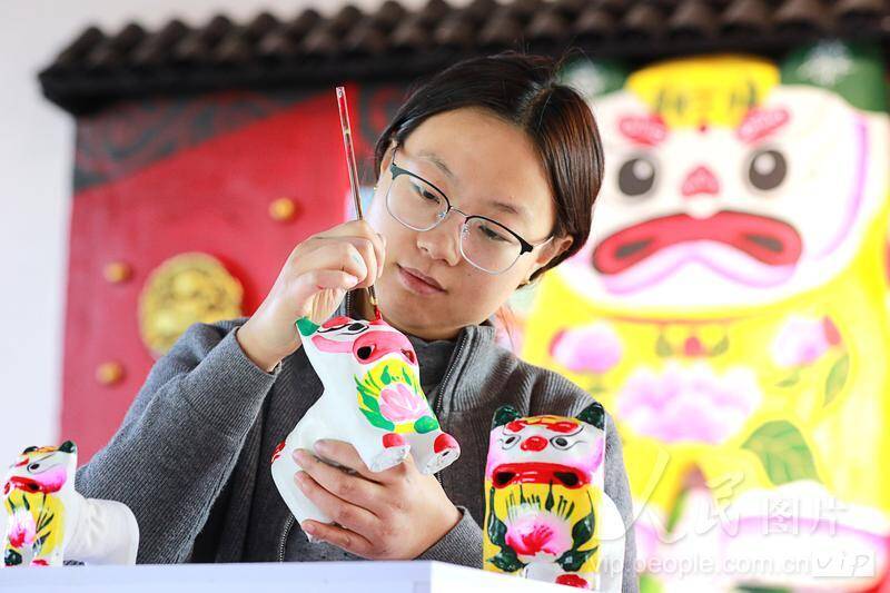 随着新年临近,在山东省高密市姜庄镇聂家庄村,村民们加班加点制作“泥叫虎”等泥塑产品,通过线上线下等方式供应全国市场。