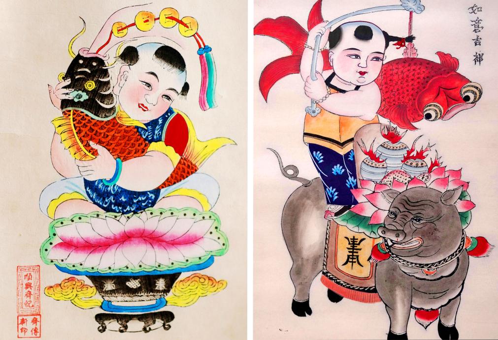 10日、山東省の無形文化遺産に登録されている高密木版年画。(組み合わせ写真、高密=新華社配信/李海濤)