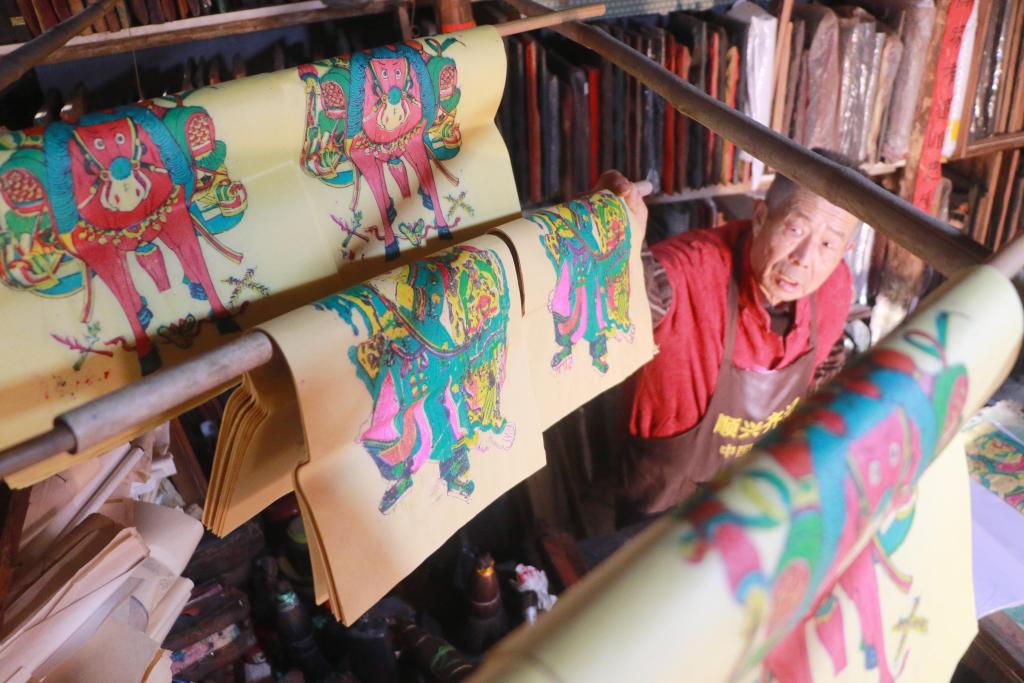 10日、山東省高密市の朱家村で撮影した高密木版年画。(高密=新華社配信/李海濤)