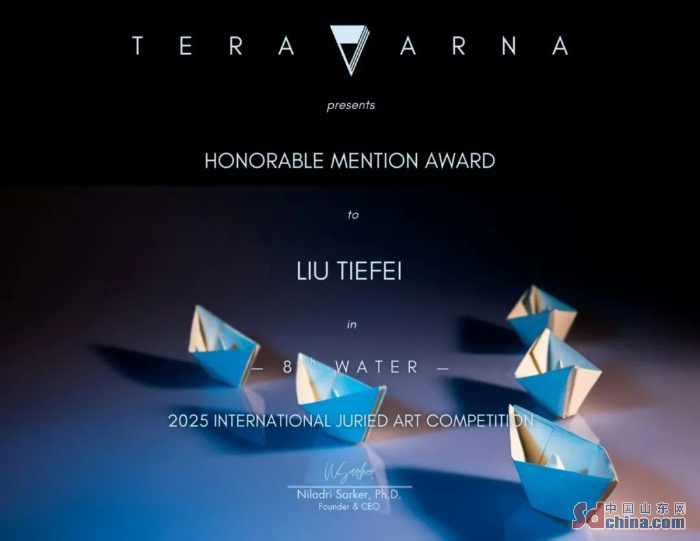 新感知刊发《Weifang artist Liu Tiefei’s Golden Mountain and Green Water wins international award》