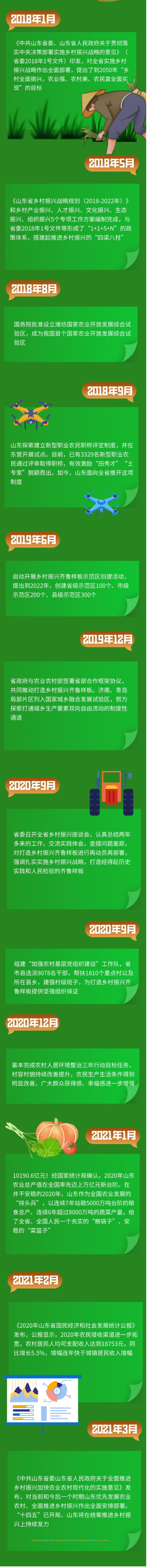 ●长图示《齐鲁乡村振兴大事记》,呈现三年来山东推进乡村振兴的重点举措、亮点成就。