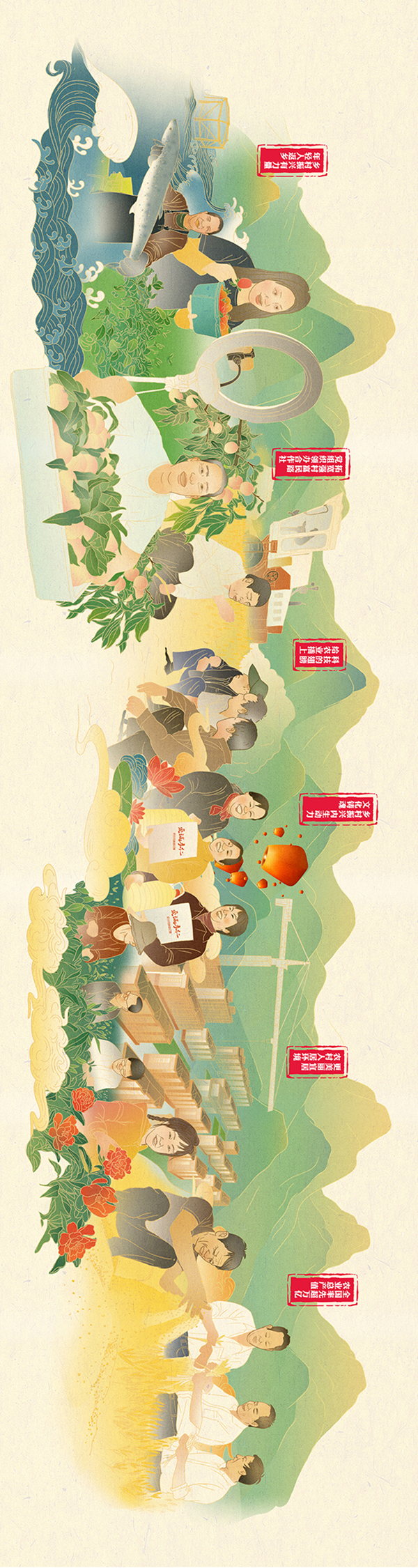●手绘长图,描绘山东乡村振兴的典型场景。