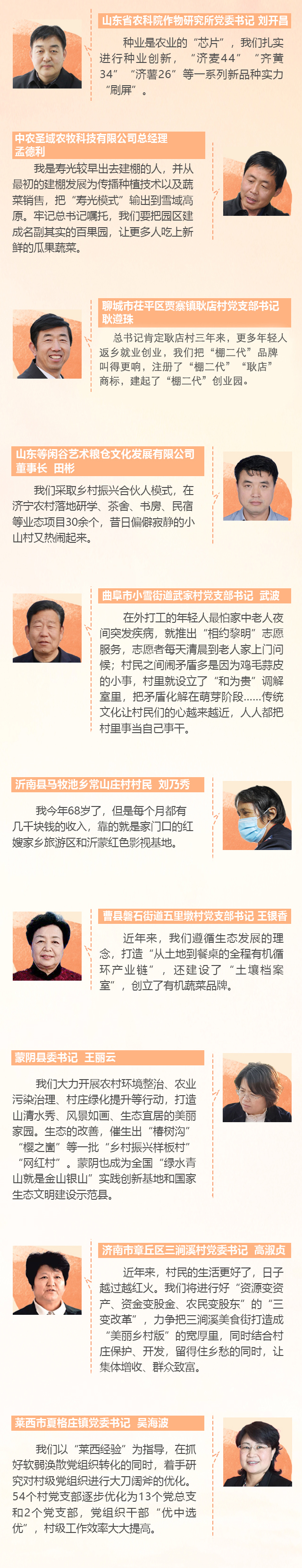 ●“向总书记说说心里话”,10位基层干部群众、农业科技工作者等,向总书记汇报自己参与和见证的山东乡村振兴之变。