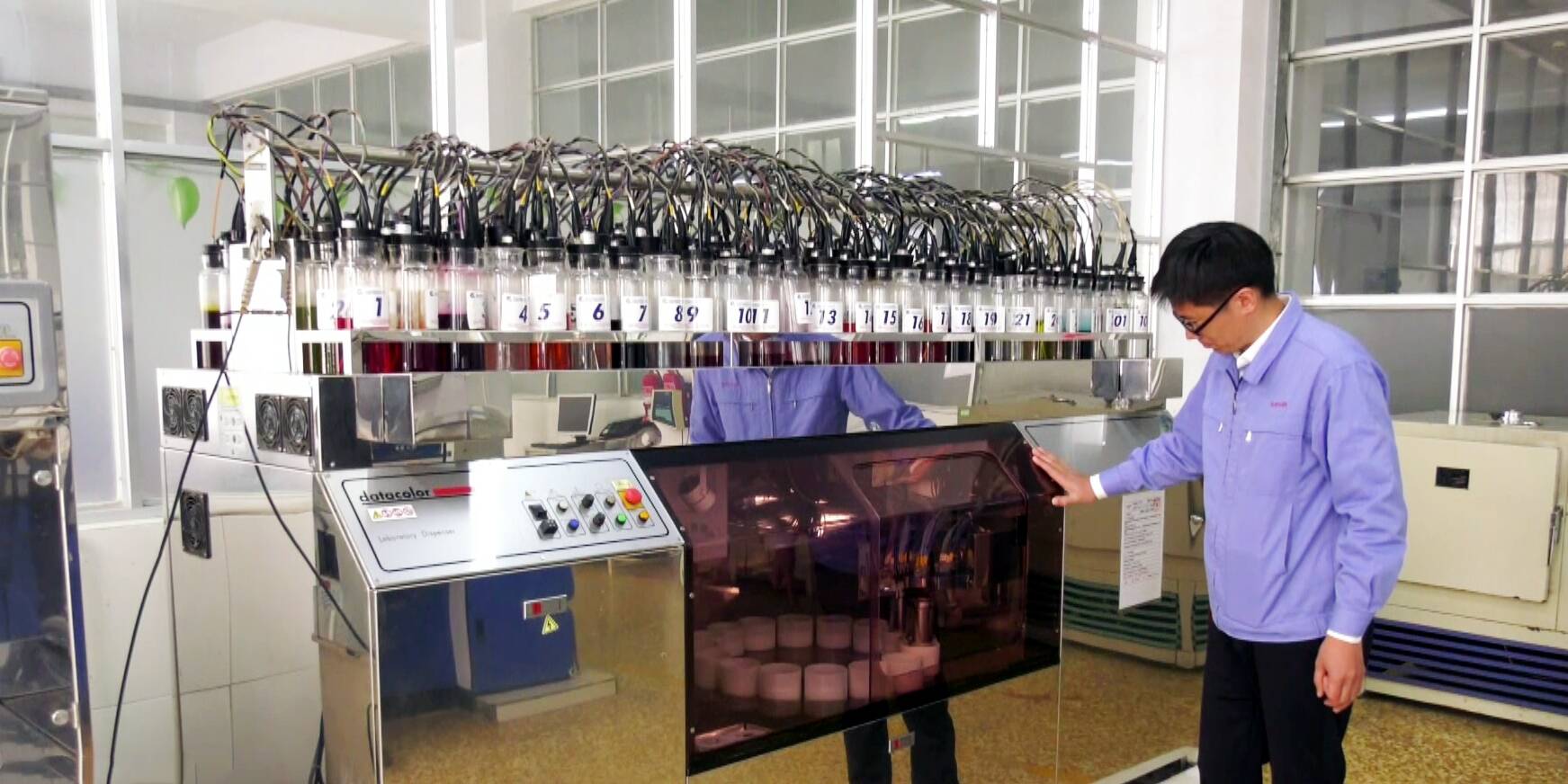 4月24日上午,在孚日集团毛巾二厂染色工艺室,卞立军正和同事们讨论绿色染色的一些新技术。据悉,目前卞立军针对各家纺生产线、市场客户需求可以驾轻就熟设计出新的绿色染色工艺,成为国家纺织染色领域专家型技术人才。孚日集团毛巾二厂染色技术主管卞立军告诉记者:“ 我们持续加强对染色工艺操作的严格把关和监督考核,学习掌握了纺织品染色从染料组合到配伍性以及染料上染的全部特性,摸索出来不同染料、不同浴比下染料使用量的换算比例和系数,都能成功制定出详细的染色工艺操作法。”