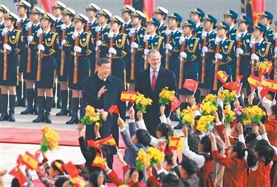 习近平欢迎费利佩六世国王访华,指出中国和西班牙都有深厚的历史文化底蕴。建交50多年来,两国坚持从战略高度和长远角度看待和发展双边关系,相互尊重、相互支持、相互成就,树立了不同历史文化、不同社会制度国家友好相处、共谋发展的典范,也为推动全球开放合作、维护国际公平正义发挥了重要作用。西班牙王室为中西关系发展作出了突出贡献。在两国迎来建立全面战略伙伴关系20周年之际,费利佩六世国王对中国进行国事访问,对推动两国友好合作不断向前发展具有重要意义。
