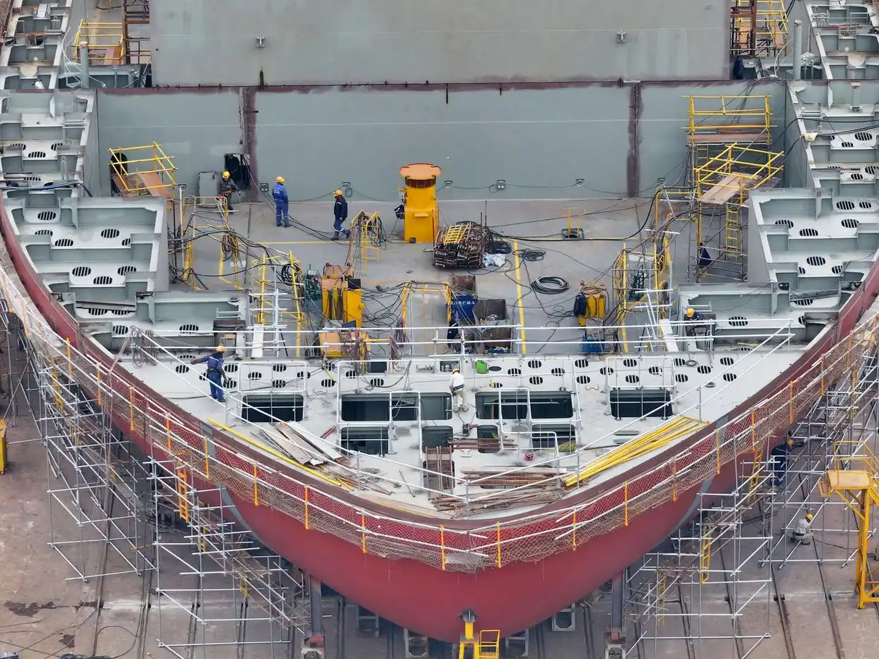 △2026年1月4日,在江苏南京一船厂内,工人们抓紧完成船舶制造订单。