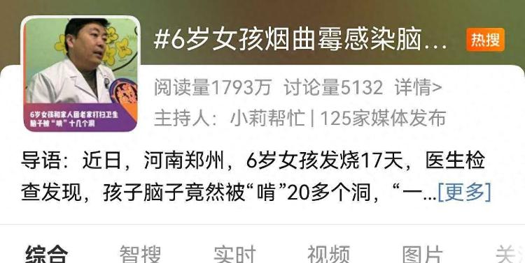 近日,河南一名6岁女孩持续发烧17天,医生检查发现其脑部被真菌侵蚀出多个空洞,引发广泛关注。