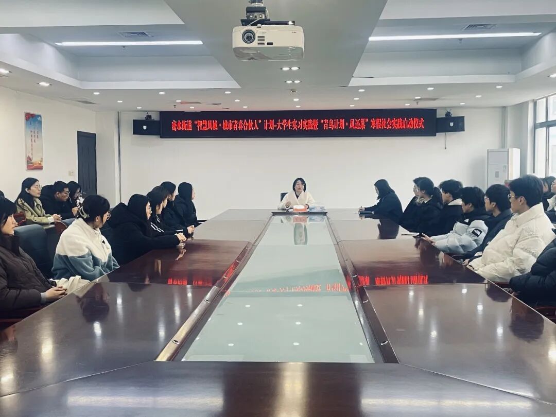 座谈交流传声音,凝聚奋进新力量。开展“青鸟计划·凤还巢”寒假社会实践活动启动仪式暨座谈会,党工委副书记与返乡大学生面对面进行交流,介绍实践活动安排,鼓励学子在实践中增长才干、展现担当,把青春活力转化为服务家乡的实际行动,自觉投身到密水街道高质量发展和文明城市建设中来。