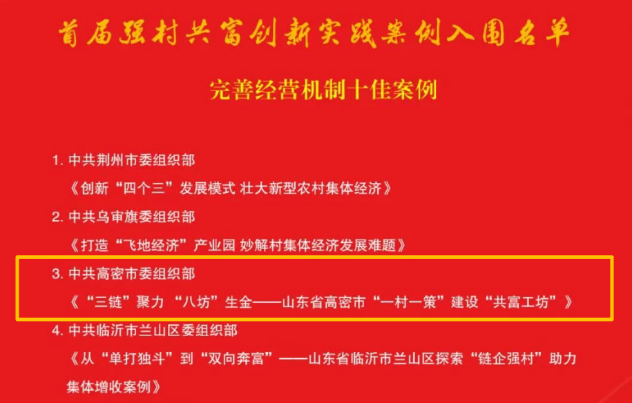 名单揭晓!潍坊高密1案例入选全国首届强村共富创新实践案例十佳案例