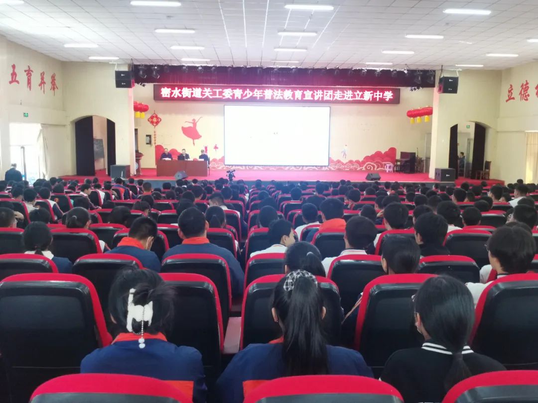 4月26日下午,密水街道关工委青少年普法教育宣讲团走进立新中学,为全校师生上了一堂法治教育课,为青少年的健康成长创造和谐向上的法治环境,立新中学副校长张永涛主持,全校师生1300余人参加宣讲活动。