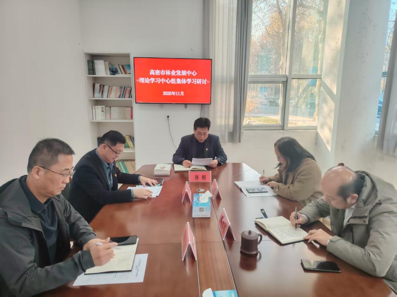 11月20日,高密市林业发展中心党总支理论学习中心组举行专题学习会议,围绕“深入学习贯彻党的二十届四中全会精神,深刻理解党的二十届四中全会提出的一系列重大理论观点、重大决策部署,自觉把思想和行动统一到全会精神上来,推动兴起学习宣传贯彻党的二十届四中全会精神的热潮”开展学习,由党总支书记、主任郑纲主持,市委市直机关工委有关同志列席参加。