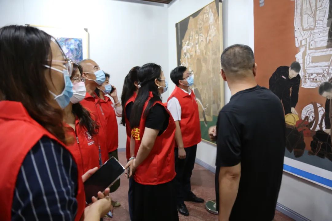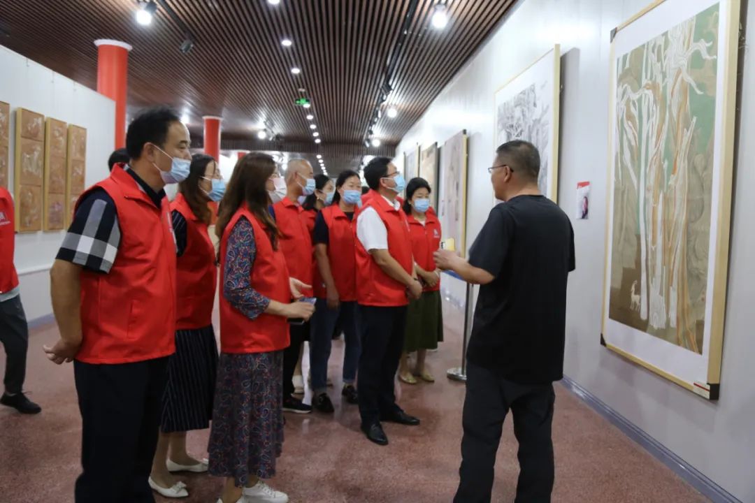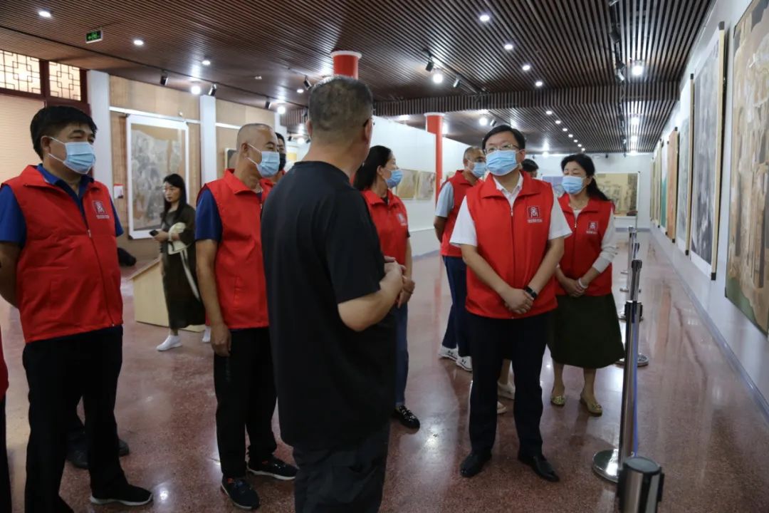 悠悠天宇旷,切切故乡情。金秋醴泉、生机盎然、蓬勃向上。9月18日上午,从醴泉街道这方热土走出去的中国美术家协会会员、中国工笔画学会会员、中国人民大学画院重彩画工作室导师、《中国书画》杂志社书画院院聘画家刘学云先生,携国家级师生画作回馈家乡,在凤凰公园举办“筑梦丹青·刘学云重彩画工作室师生展”。该画展由市政协、市委宣传部、市文旅局、市文联等部门主办,市夷安文化博物馆等部门协办,汇集了刘学云重彩画工作室20余名学员的50余幅获得国内大奖的精品力作。据了解,中国重彩画有着悠久的历史,自绘画诞生之时,始终伴随着中华文明的足迹,并逐渐走向成熟,在漫长的中国画进程中,重彩画以其绚烂的色彩和丰富的艺术表现形式,记录着华夏民族自强不息的光辉历程,记录着每一个时期人们对美好事物的梦想和追求。为体验工笔重彩画艺术之美,提升城市文化软实力,对内增强自信心,对外弘扬正能量,发出醴泉好声音,醴泉街道政协联络室于9月19日上午11:00,组织政协委员现场观摩“筑梦丹青·刘学云重彩画工作室师生作品展”。委员们边走边听、边看边议,详细了解每幅作品背后的故事、创作灵感、主题表达和构图思想。大家纷纷表示,观展的过程,不仅是感受艺术冲击力的过程,更是增强政协凝聚力的过程。未来已来,将来将至。醴泉街道广大政协委员将携手同行,并肩奋斗,一起绘就全面建设富强和谐充满活力的现代化临港新城的时代画卷,以优异成绩迎接党的二十大胜利召开!